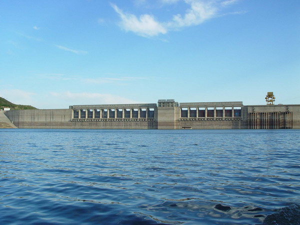 潘家口水利樞紐工程分兩期施工。一期工程自一九七五年十月主體工程動工,至一九八五年基本竣工。一九八八年七月通過國家驗收。一期工程的主要建筑物有:主壩一座,副壩兩座,壩后式電站一座15萬kw常規(guī)機(jī)組一臺和220千伏高壓開關(guān)站一座。二期工程于一九八四年夏季開始動工興建,主要建筑物有閘壩一座,5000kw常規(guī)機(jī)組兩臺,9萬kw蓄能機(jī)組三臺。