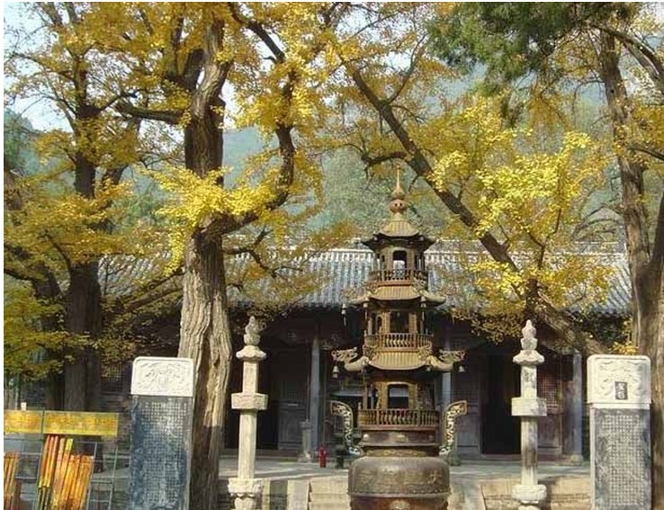 即五峰山,禪林寺古銀杏風(fēng)景園“三古”之一,這座屹立于燕山叢中的名山,東與名勝舍身臺(tái)眺望,西和邊關(guān)古隘羅文峪遙對(duì),南臨沙河,北靠長(zhǎng)城。五座并峙的峰巒自北向南延伸十?dāng)?shù)里,禪林寺便建于中峰下端。著名的“五峰拱翠”一景,版權(quán)所有山東聊城聊之旅國(guó)際旅行社有限公司,轉(zhuǎn)載必究!便來(lái)于此。“周圍古松夾徑,林木陰翳,云影煙光,紅紫萬(wàn)狀,映帶寺之左右”,形成了東、西“四峰側(cè)立,如拱如傴,儼然左右?jiàn)A輔之象,真奇觀哉。境內(nèi)諸山應(yīng)以茲為冠”,故于清代列為一大名勝(見(jiàn)《遵化州志》)。“五峰拱翠”之景,并非騷人墨客夸大渲染,事實(shí)上確實(shí)引人入勝。滿山上下怪石嶙峋,結(jié)構(gòu)復(fù)雜,形態(tài)各異。翠柏青松漫坡遍壑,形狀更為奇特,有的橫生于崖額,圓圓的樹冠,似一頂華蓋撐在半空,有的樹干彎而直立向上,形如世外仙人騰躍空中,有的矗于亂壁、峰頂、怪石之上,迎霜傲雪,挺拔峭立,千百年來(lái)吸引著無(wú)數(shù)的游客。