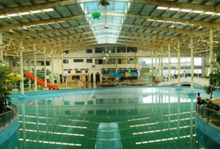 2005年,投資6000余萬(wàn)元的溫泉城建成,并于當(dāng)年11月19日投入使用,其規(guī)模居山東乃至周邊省市之首,封閉建筑面積2萬(wàn)余平方米,城內(nèi)環(huán)境幽雅別致,池周有形態(tài)各異的南方園林樹(shù)木,廳中有城,城上有數(shù)不盡的奇花異草,池邊有亭、古羅馬式圓亭古樸莊重,赤色巨石層巒疊翠,青色圍墻千姿百態(tài),漢白玉小橋如月似虹,沖浪池巨龍活靈活現(xiàn)。池中有池,園中有園,山中有池,池中現(xiàn)島。彎彎曲曲的半圓形滑道把樓池連為一體。由淺入深的巨大沖浪池,占據(jù)大廳中央,波濤洶涌,浪花飛濺,水能習(xí)性強(qiáng)的人在深水處或被托向浪尖,或被踮入浪谷, 帶給我們海邊的感覺(jué);頑皮的兒童坐在池邊不斷用雙手迎著浪花,與水相戲;溫泉池里,一排排按摩床在岸邊或隱或現(xiàn),泉水相繼噴涌,躺在上邊,比器械按摩更舒心,更愜意。右邊,斜面噴泉似箭,形成一片白色,身體靠過(guò)去,萬(wàn)點(diǎn)熱水滴直擊身體,一身的疲勞頃刻間化為烏有。 溫泉城內(nèi)共設(shè)30個(gè)洗浴池,豪華標(biāo)準(zhǔn)化的游泳比賽池,可舉辦大型項(xiàng)目比賽,兒童游泳池,幼兒戲水池,藥泉池,泡沫池,情人按摩浴,旋渦池、日本魚(yú)療池、花浴池等一應(yīng)俱全,另設(shè)國(guó)內(nèi)一流的滑道及桑拿,搓澡、棋牌、乒乓球、臺(tái)球等應(yīng)有盡有,讓你一天??嗟玫椒潘桑⒁杂淇斓男那槿ビ用魈?。