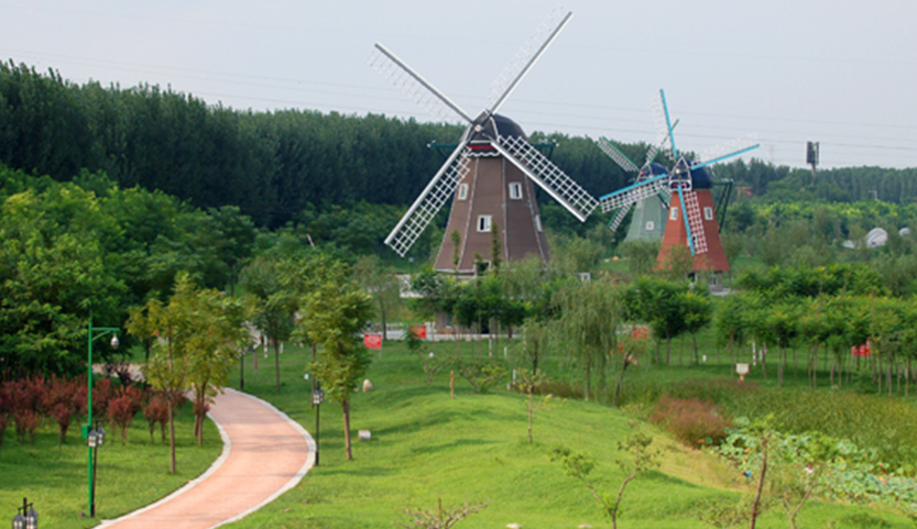 該公園以河為中心,在河兩岸種植蘆葦、蒲草,形成的濱水綠帶。用地總面積 4500畝,其中,水面積1000畝,綠化面積(人工改造部分)500畝?,F(xiàn)種植各類苗木110多萬株、其中喬木1.5萬株,灌木40萬株,地被植物21萬株,水生植物45萬株,綠化工程投資120 萬元。常綠樹4種有雪松、黑松、龍柏、黃楊等;落葉樹20多種,如國槐、垂柳、合歡、苦楝等;藤本及地被植物有迎春、月季、凌霄、五葉地錦等;宿根花卉及應(yīng)時花卉10多種,水生植物10多種。