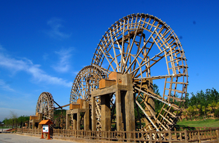 景觀建設(shè)包括親水、雕塑和配套三大部分,其中最具特色的為“一鐵塔、二雕塑、三風(fēng)車、四水車”等大型作品。“一鐵塔”,即觀摩塔,主體高49米,總高60米,為慶祝建國60周年設(shè)計打造;“二雕塑”,即嫦娥奔月、后羿射日兩個極具地方文化內(nèi)涵的雕塑;“三風(fēng)車”,建設(shè)中西文化相結(jié)合的三座大型原生態(tài)風(fēng)車;“四水車”,建設(shè)四座原生態(tài)水車群體。
