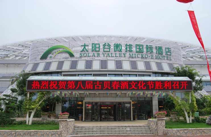中國(guó)太陽谷是2010年世界太陽城大會(huì)的舉辦地,大會(huì)主會(huì)場(chǎng)——日月潭微排國(guó)際酒店(簡(jiǎn)稱日月壇)是中國(guó)太陽谷標(biāo)志性建筑,由皇明集團(tuán)投資興建,是目前世界上最大的太陽能建筑,總建筑面積約7.5萬平方米。 2008年9月1日,皇明太陽能集團(tuán)總部搬遷至日月壇。
