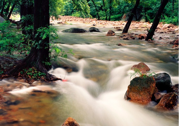 北九水為白沙河中游的峽谷地帶。白沙河發(fā)源于巨峰北麓海拔800多米處的天乙泉,始名涼清河,中為九水。