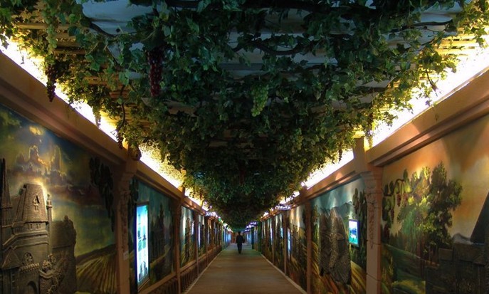 博物館占地總面積8000平方米。在這個洞內192米長的主通道部分分五個區(qū)域主要講述了釀酒葡萄及葡萄酒基礎知識、新舊世界葡萄酒的發(fā)展歷史以及葡萄酒的文化知識等內容。館內以實物、圖片、圖像、雕塑、現(xiàn)場講解、多媒體等多種方式對葡萄酒文化和歷史進行全方位展示,使之成為一處科普的園地,為提高人們對葡萄酒的認識創(chuàng)造一處平臺?!?/p>