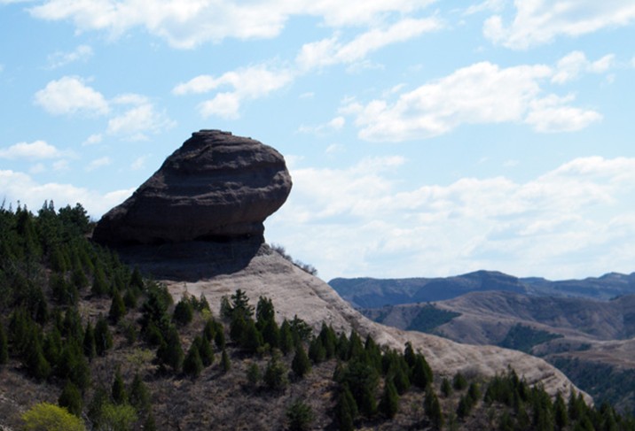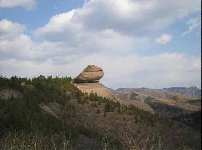 在承德市武烈河東岸馨錘峰的東南端。隔一條山谷,有一巨大的巖石,踞于群峰之巔,似一青蛙欲躍蒼穹,故名。是承德十大自然勝景之一。 蛤蟆石,長約二十米,高四十多米。蛤蟆頭探出懸崖,腹下有南北兩個空洞,洞室南北相連,東西貫通,南洞最大,高一米八,寬八米,縱深九米。夏天游覽至此,可納涼消暑。蛤蟆脊背由承德礫巖中的卵礫石組成。顆顆卵石,光滑細膩,構成了凹凸別致的紋體。其背地勢比較平坦,大小可容納數(shù)十人。