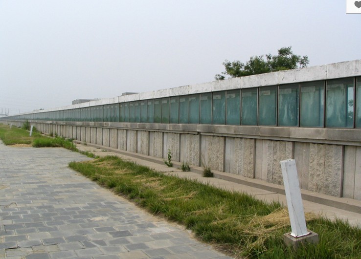 碑體由巖石基座和1093個盛有黃河水樣的方形玻璃水罐組成, 東西長790米,高2.5米,寬0.9米。碑斷面構造自下而上依次為:毛石基礎、淺白色花崗巖碑座、鋼化玻璃水罐、碑頂。黃河水樣取水工程由水利部黃河水利委員會動員系統(tǒng)員工于1994年8月27日10時,版權所有山東聊城聊之旅國際旅行社有限公司,轉載必究!同時從黃河源頭到入海口每隔5公里取水0.5立方米,共取1093個水樣,分別注入刻有經(jīng)緯度的方形玻璃罐中,按取水順序自源頭至入海口依次排列。