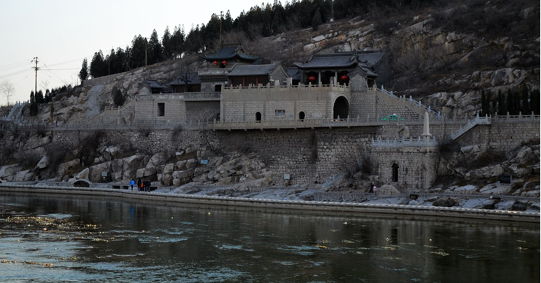 黑龍洞上的廟宇建筑群稱風(fēng)月關(guān),版權(quán)所有山東聊城聊之旅國(guó)際旅行社有限公司,轉(zhuǎn)載必究!又名“滏口祠”,坐落在神麋山陽(yáng)一條東西長(zhǎng)數(shù)十米的石券之上。是一組具有濃郁民族風(fēng)格的古建筑群,始建于唐代。廟院內(nèi)有黑龍爺塑像,廟東側(cè)建有上下兩層琉璃瓦頂?shù)睦ド矫髟麻w,閣內(nèi)供有觀音菩薩像。券西口石上刻有“風(fēng)月關(guān)”三字。由西門拾級(jí)而上進(jìn)入廟院,院內(nèi)坐南向北建有卷棚式歇山頂、深寬各三間的黑龍廟,廟內(nèi)有黑龍爺塑像。前廳西墻上還嵌著明進(jìn)士張應(yīng)登親書“登昆山明月閣觀泉”詩(shī)的石刻一塊。據(jù)史載,該閣、廟均始建于唐代,由于歷代重修改建,已失去原貌,但其建筑莊重緊湊,具有濃厚的民族風(fēng)格。