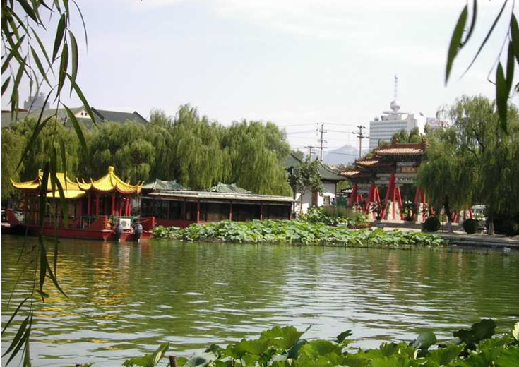 大明湖是濟(jì)南三大名勝之一,是繁華都市中一處難得的天然湖泊,也是泉城重要風(fēng)景名勝和開放窗口,聞名中外的旅游勝地,素有“泉城明珠”的美譽(yù)。它位于濟(jì)南市中心偏東北處、舊城區(qū)北部。大明湖是一個(gè)由城內(nèi)眾泉匯流而成的天然湖泊,面積甚大,幾乎占了舊城的四分之一。市區(qū)諸泉在此匯聚后,經(jīng)北水門流入小清河。現(xiàn)今湖面46公頃(690畝),公園面積86公頃(1290畝),湖面約占百分之五十三,平均水深2米左右,最深處約4米。