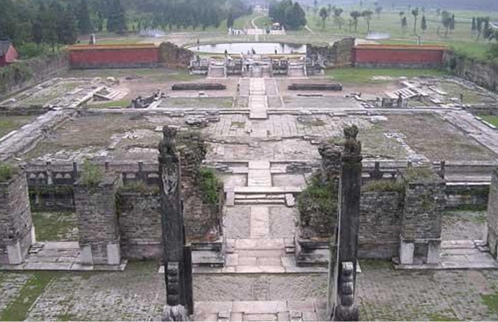 關(guān)于堯陵規(guī)模,《水經(jīng)注》云:“今成陽(今鄄城地)城西二里有堯陵,陵南一里有堯母慶都陵,于城為西南,稱曰靈都,鄉(xiāng)曰崇仁,邑號修義,皆立廟。四周列水,潭而不流,水澤通泉,泉不耗竭,至豐魚筍,不敢采捕。前并列數(shù)碑,枯柏數(shù)株,檀榆成林。二陵南北,馳道徑通,皆以磚砌之,尚修整。堯陵東、城西五十余步中山夫人祠,堯妃也,石壁階墀仍舊,南西北三面,長櫟聯(lián)蔭,扶疏里余。中山夫人祠南,有仲山甫冢,冢西有石廟,羊虎傾低,破碎略盡,于城為西南,在靈臺之東北。”由此可知,堯、堯母、堯妃均葬谷林。北魏時期,堯陵區(qū)還很完整。清嘉慶年間還有相當(dāng)規(guī)模。據(jù)《濮州志》堯陵古圖所示,堯陵為坐北朝南三進式長方形院落,四周圍以磚墻。大門前有“石門”牌坊,東側(cè)有房數(shù)間。大門外東側(cè)有一水井,再向東是“圣母殿”。大門內(nèi)為第一進院落,兩側(cè)有東西“更衣亭”。第二進院門為一正兩偏,門內(nèi)左右是東西朝房,中央是圓形花園,其后是一座“享殿”。殿后是第三進院落,古松掩映之下,墓丘巍然屹立,版權(quán)所有山東聊城聊之旅國際旅行社有限公司,轉(zhuǎn)載必究!墓前豎一石碑?!?/p>