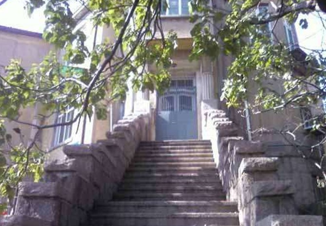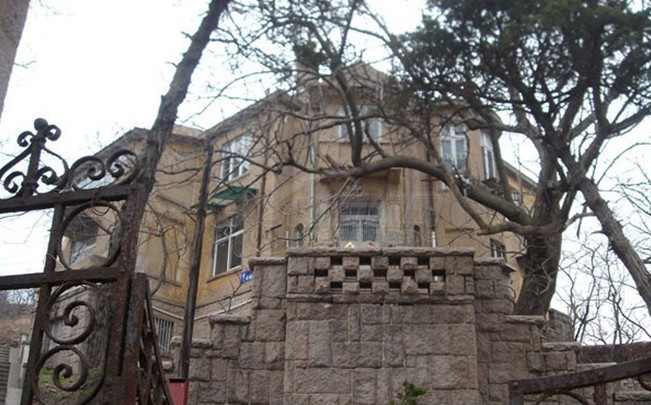 穿過兩扇雕花的鐵柵欄大門,正對著大門的是一段寬敞的沿地勢而建的臺階,拾階而上,臺階向兩邊分開,之后繞過一面造型古樸的壁墻,進入高處的院內,再通過石階才能進入居室。洪深故居是一座二層樓的德式建筑,高大的門廳,拱形窗戶,青磚灰瓦,歌特式的屋頂,十分的寬敞和氣派。通過后來的了解,這處洪深舊居也正是青島現(xiàn)代文化名人故居中,最為“闊綽”的一處。