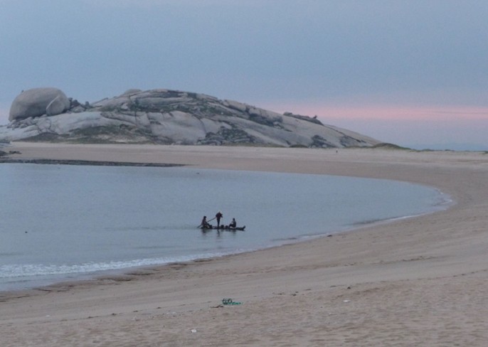 在平潭島西北看澳村西側(cè)500多米的海面,遠遠望去有一個圓盤狀的大礁石,托著一高一低的兩塊碑形海蝕柱。整個礁石象一艘大船兩塊巨石象兩面鼓起的雙帆,似乎正在乘風(fēng)破浪前進。這是平潭最著名的自然景觀――石牌洋。又稱為“半洋石帆”和“雙帆石”。