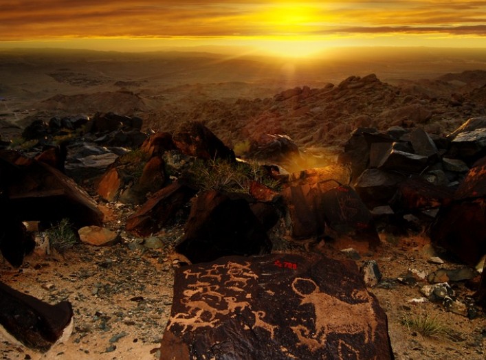 曼德拉山巖畫位于巴丹吉林沙漠東緣曼德拉蘇木西南14公里的曼德拉山中,在18平方公里內(nèi),分布著4234幅數(shù)千年前的古代巖畫,是世界最古老的藝術(shù)珍品之一,堪稱“世界第二,亞洲第一”。曼德拉山巖畫雕刻精湛,圖案逼真,形象生動(dòng),古樸粗獷,年限可追溯到原始社會(huì)晚期和元、明、清各代,記載了當(dāng)時(shí)的經(jīng)濟(jì)、文體、生活情景和自然環(huán)境、社會(huì)風(fēng)貌。