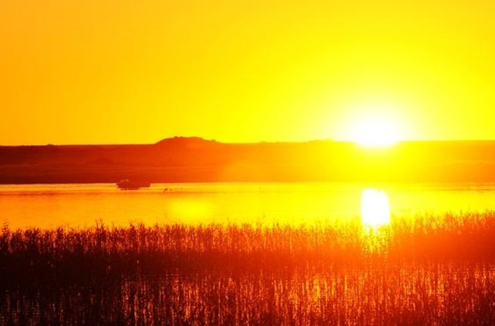 育雛,所以得名“天鵝湖”。 版權所有山東聊城聊之旅國際旅行社有限公司,轉載必究!聞到了,我聞到了水的氣息,天鵝湖近在咫尺。在夕陽的照射下,不足30平方公里的湖面顯得如此的神秘,難怪能讓優(yōu)雅的天鵝駐足停留。一陣微風吹過,湛藍的湖水泛起陣陣波紋,湖邊的蘆葦在風中搖曳,這一切的一切,都讓人感到心曠神怡,心潮澎湃,在如此干旱的地區(qū),還能見到一汪湖水,實在是一件雅事。初見東居延海的郁悶心情蕩然無存,此刻,我們感謝上帝的仁慈,感謝他留給了我們一汪碧藍的湖水,給了我們一個不留遺憾的夢想。