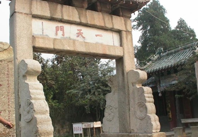 宮前三重石坊形若階梯。前為一天門坊,明代建,參政龍光題額,清康熙五十六年(1717年)巡撫李樹德重建,兩側(cè)有明代人題“天下奇觀”及“盤路起工處”大字碑。中有孔子登臨處坊,明嘉靖三十九年(1560年)巡撫山東都察院右副都御史朱衡等建,嘉靖狀元羅洪先題額并聯(lián):“秦王獨(dú)步傳千古,圣主遙臨慶萬年。”聯(lián)語于1967年被鑿毀。