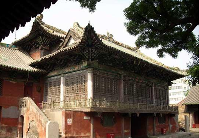 戲樓系楊氏宗祠的一部分。楊氏宗祠為三廳兩廂,總面積為6千平方米。古戲樓位于前廳,離地面2. 8米。中為正臺(tái),左右為副臺(tái)。正臺(tái)寬5.5米,臺(tái)深6米,空間高約為3米,臺(tái)口有雕花欄桿,面積33平方米。版權(quán)所有山東聊城聊之旅國(guó)際旅行社有限公司,轉(zhuǎn)載必究!正臺(tái)側(cè)正中有兩扇雕花木門,木門兩側(cè)各有一圓形洞門,分別供出場(chǎng)和下場(chǎng)用。兩邊的副臺(tái)各40平方米,可供樂(lè)隊(duì)伴奏、演員化妝、更衣等用。樓下正中為大門通道,兩邊有廂房,可供藝人住宿。戲樓面朝大廳,臺(tái)前為天井,兩側(cè)建有看樓可容納觀眾800余人。
