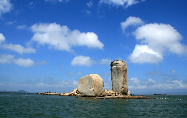 從看澳村岸邊坐渡船,十幾分鐘就到達礁石上,礁石底部是一組平坦完整的巖石。兩個石柱均由粗粒灰白色的花崗巖組成 東側(cè)的一個高達33米,胸寬9米,厚8米;西側(cè)的一個高17米,胸寬15米,厚8米。版權(quán)所有山東聊城聊之旅國際旅行社有限公司,轉(zhuǎn)載必究!兩個石柱的底部都是近似四方形體,直立在礁石上。據(jù)地質(zhì)學(xué)家考證是世界上最大的花崗巖球狀風(fēng)化海蝕柱。由于它的奇特壯觀,對游人有著強烈的震撼力和吸引力。建設(shè)部與中科院的專家稱之為:“壟斷性的世界級旅游資源。”明代旅行家陳第曾譽之為“天下奇觀”, 清朝女詩人林淑貞詩贊:“共說前朝帝子舟,雙帆偶趁此句留;料因濁世風(fēng)波險,一泊于今纜不收.
