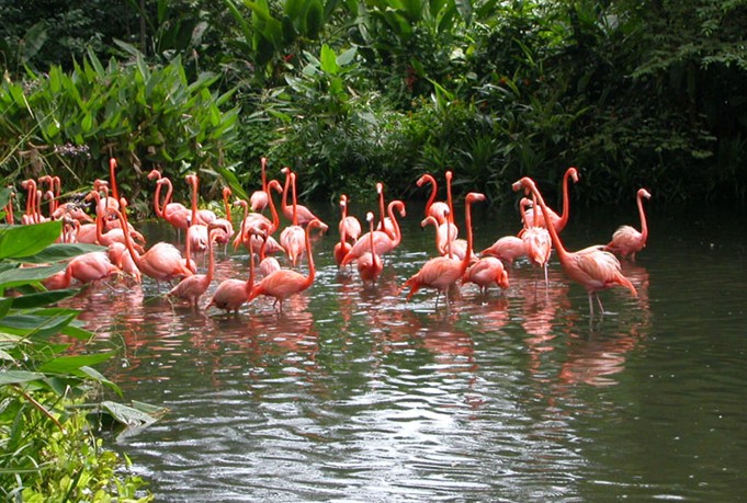 新加坡的裕廊飛禽園內(nèi)建有95個鳥舍、10個活動場所和6個池塘,養(yǎng)有380多種飛鳥,約4600只,其中有29種受威脅鳥類。園內(nèi)廣泛搜羅了東南亞及世界各地的鳥類,有來自西班牙的紅鶴、來自北京的知更鳥、來自幾內(nèi)亞的食火雞、來自巴西的三趾鴕鳥、有羽毛絢麗的熱帶鳥和來自冰天雪地的南極企鵝等,是個“花木四時茂,人來鳥不驚”的“鳥類王國”。園中修建有四通八達(dá)的柏油小徑,不愿步行者也可選游覽車。
