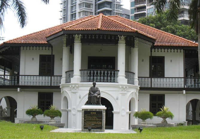 孫中山南洋紀念館前稱晚晴園,是同盟會南洋支部舊址,保存了孫中山先生在新加坡時的許多重要史料。晚晴園原由一位張姓富商修建,供同盟會南洋支部使用。孫中山從1905年開始,數(shù)次訪問新加坡,把此地做為中國同盟會南洋支部的活動據(jù)點。1966年3月,新加坡中華總商會將幾度易手的晚明園整修后重新開放,供人憑吊一代偉人孫中山。紀念館的正面,擺放著中山先生的座像。