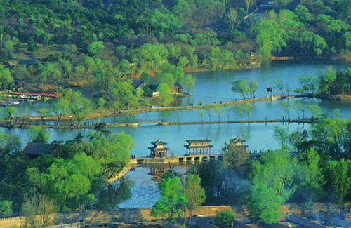 避暑山莊又名承德離宮或熱河行宮,位于河北省承德市中心北部,是清代皇帝夏天避暑和處理政務(wù)的場所。正如陳運(yùn)和詩《承德避暑山莊》所寫:“盛夏,一個(gè)大清朝廷全搬到承德 嚴(yán)冬,一座帝王江山又運(yùn)回京宅 搬河的搬河 運(yùn)岳的運(yùn)岳 皇宮與避暑,圣旨與奏折 一齊挪動(dòng)窩”。避暑山莊位于承德市中心區(qū)以北,武烈河西岸一帶狹長的谷地上,距離北京 230公里。版權(quán)所有聊城聊之旅旅行社有限公司,轉(zhuǎn)載必究它始建于1703年,歷經(jīng)清朝三代皇帝:康熙、雍正、乾隆,耗時(shí)約90年建成。 與北京紫禁城相比,避暑山莊以樸素淡雅的山村野趣為格調(diào),取自然山水之本色,吸收江南塞北之風(fēng)光,成為中國現(xiàn)存占地最大的古代帝王宮苑。