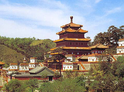 在避暑山莊周圍依照西藏、新疆喇嘛教寺廟的形式修建喇嘛教寺廟群,供西方、北方少數(shù)民族的上層及貴族朝覲皇帝時(shí)禮佛之用。在避暑山莊的東面和北面,武烈河兩岸和獅子溝北沿的山丘地帶,共有11座寺院。因分屬8座寺廟管轄,其中的8座由清政府直接管理,故被稱為“承德外八廟”。廟宇按照建筑風(fēng)格分為藏式寺廟、漢式寺廟和漢藏結(jié)合式寺廟三種。這些寺廟融和了漢、藏等民族建筑藝術(shù)的精華,氣勢宏偉,極具皇家風(fēng)范。這12座建筑風(fēng)格各異的寺廟,是當(dāng)時(shí)清政府為了團(tuán)結(jié)蒙古、新疆、西藏等地區(qū)的少數(shù)民族,利用宗教作為籠絡(luò)手段而修建的。這些廟宇多利用向陽山坡層層修建,主要殿堂聳立突出、雄偉壯觀。