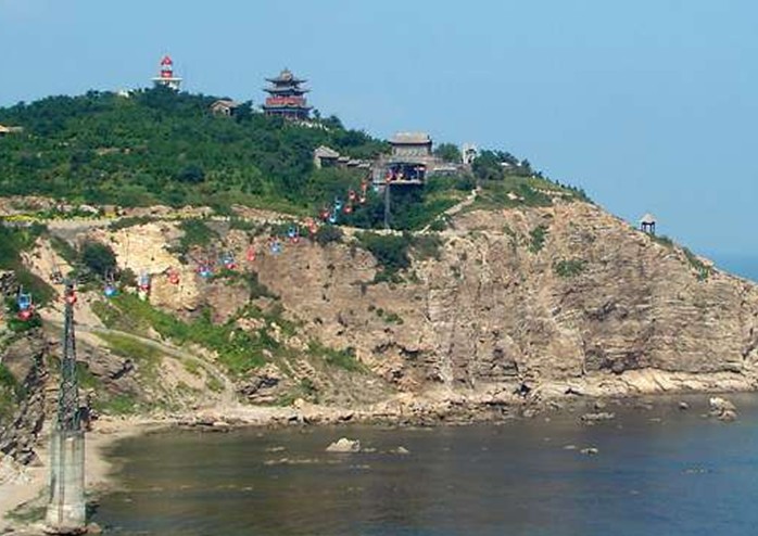 田橫山俗稱老北山,地處蓬萊陸地最北端,也是膠東半島最北端,這塊突入海中的陸地岬角稱為登州岬或蓬萊岬,是渤黃二海的分界處,具有“一山分二海”的獨特地理位置。東與丹崖山隔一小海灣相接,石壁高峻;西、北兩面半浸海中,形勢險要。漢時韓信破齊,齊王田橫率其徒五百人東走,曾筑寨于此,因此得名。明萬歷二十一年(1594年),為鞏固海防,明廷調浙江兵卒于此戍守,在山上筑起城垣和署衙廨宇。清光緒二十年(1895年),中日甲午戰(zhàn)起,登州統(tǒng)領夏辛酉在山上筑起炮臺,架起愛母斯郎炮數(shù)門,守護海口,兼為旅順之聲援。這里既有山海勝境,又有歷史遺跡,隨著旅游事業(yè)的發(fā)展,到這里探古覽勝的游人不斷增加。 1993年,田橫山與丹崖山之間架起了一條跨海索道,這里成為蓬萊閣旅游區(qū)的一個組成部分。在跨海索道上乘坐纜車,仰望前后兩側的仙山瓊閣,俯瞰大海的萬里澄波,聯(lián)想三神山的迷人神話,會不由自主地產生一種飄飄欲仙的感覺。(跨海索道全長481米,高點海拔50.7米,相對落差26.3米,采用單循環(huán)半包吊椅式結構,共設纜座54個,日可載客5340人次,是山東省第一條海上索道。它區(qū)別于其它索道的地方就是可以搭乘纜車領略海上風光,在感受上是別有情趣的。