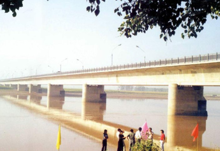 位于市南郊,它是從包頭市白云鄂博到陜西等省通衢的重要組成部分。大橋全長(zhǎng)810米,主孔12孔,每孔跨徑為65米,橋面寬12米,下部由14墩臺(tái)組成,上部構(gòu)造為預(yù)應(yīng)力鋼筋混凝土箱式連續(xù)梁,采用最新工藝多點(diǎn)頂推法施工。上部結(jié)構(gòu)為3聯(lián)4孔65米預(yù)應(yīng)力鋼筋混凝土連續(xù)箱梁,跨徑組合為3*(4*65)+20米,1983年建成通車(chē),是黃河中上游最大的橋梁之一。設(shè)計(jì)荷載汽車(chē)—20級(jí);拖車(chē)—100級(jí)。