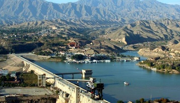 在甘肅永靖縣境內(nèi)。黃河兩岸崇山峻嶺, 形成峽谷。1974年建成具有發(fā)電、防洪、灌溉、養(yǎng)殖、航運等功能的綜合性水利樞紐工程。一條長840米、高147米的巨大攔河壩把黃河攔腰斬斷, 形成了劉家峽水庫(庫容57億立方米,水域面積130平方公里),大壩下安裝了五臺國產(chǎn)大型水輪發(fā)電機組,成了總裝機容量122.5萬千瓦年發(fā)電量57億度的黃河上游第一座水力發(fā)電站。