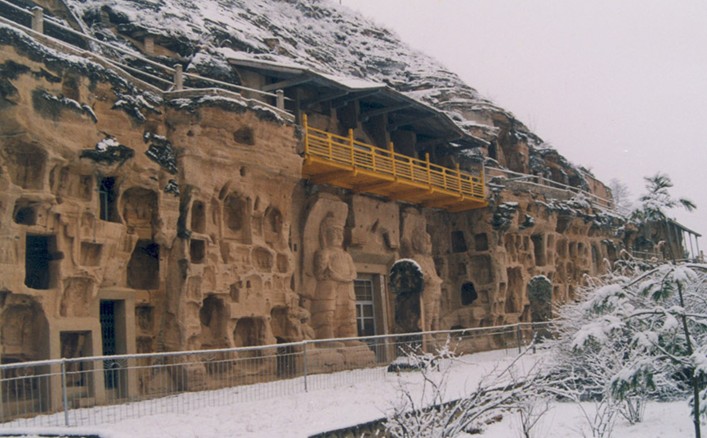 窟龕因崖面自然形態(tài)分為上下兩層,以回廊石階貫通,布局有制,層次分明。特別是165洞窟高達(dá)14米,深15.7米,寬21.7米,規(guī)模宏大,全國罕見。文物保存完整,內(nèi)容豐富,其歷史、藝術(shù)、科學(xué)、旅游價值很高。是世界石窟藝術(shù)的珍品,這里背山面水,自然風(fēng)景典雅秀麗。春天姹紫嫣紅,鳥語花香;夏日泉水叮咚,涼風(fēng)習(xí)習(xí);秋季霜葉爛漫,碩果累累;冬至瑞雪紛飛,幽靜而壯觀,人文景觀獨特。石窟分上中下三層,其中以奚康生創(chuàng)建的一百六十五號窟為最大,它是以七佛為內(nèi)容的大型窟。七佛造像宏偉精湛,莊嚴(yán)肅穆,不失北魏造像的光彩和魅力。伴之七佛而雕造的彌勒菩薩、騎像菩薩、手持日月的阿修羅都是富有藝術(shù)感染力的成功作品。除此而外,還有240號窟的北周造像,顯示了敦樸厚重的風(fēng)度。北石窟寺以唐代窟最多,最有代表性的是建于武則天如意元年(公元692年)的32號窟??邇?nèi)的大小雕像面容豐腴,秀目含情,飄然欲動,姿態(tài)動人,堪稱盛唐藝術(shù)精品,唐代造像在藝術(shù)上達(dá)到了新的成就。窟內(nèi)還保存著隋、唐、宋、金、西夏、元等各代的題記150多則,是研究歷史、書法的珍品。題記確切記載了石窟的開鑿年代,為研究歷代社會生活和發(fā)展變化,提供了很有價值的文字資料。這些綿亙千余年的雕刻藝術(shù),凝結(jié)著勞動人民的智慧,是古代藝術(shù)匠師們辛勤勞動的結(jié)晶。為我們留下了豐富的精神財富。 北石窟寺以寺溝的窟龕最為集中,共編號 282個,窟群開鑿在高20米、寬 120余米的覆鐘山崖壁上,窟龕上下重疊多達(dá)3層。面向西,因周圍山崖石質(zhì)屬早白堊紀(jì)黃砂巖,砂質(zhì)均勻,膠結(jié)性能較好。造像可分為圓雕、半圓雕和浮雕等幾種。以北魏和唐代的最為精美。原窟龕內(nèi)均有彩繪壁畫或圖案裝飾,現(xiàn)絕大多數(shù)已剝落無存。