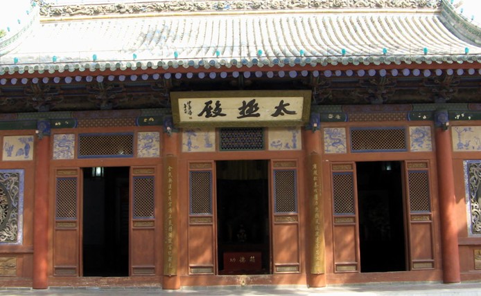 進(jìn)大門牌坊,即入正門。此門五間門面,共寬十八米,進(jìn)深兩間。正中門楣,原掛有祖籍天水的明代著名書法家胡纘宗所書"與天地準(zhǔn)"巨匾一方,現(xiàn)懸掛"太昊宮"匾一,含義同"與天地準(zhǔn)"相似,都是頌揚(yáng)伏羲造福人類的恩德廣大無邊。伏羲廟的這座正門,雖也經(jīng)清代局部修繕,但其主體部分,仍然保留了明代建筑風(fēng)格,實(shí)為難能可貴。版權(quán)所有山東聊城聊之旅國(guó)際旅行社有限公司,轉(zhuǎn)載必究!至今,屋頂完整無損,正脊兩端施龍吻,尾向內(nèi),背獸齊全,中央置寶瓶;脊身飾纏技牡丹。這套質(zhì)樸典雅、玲斑剔透的飾品構(gòu)件,工藝、藝術(shù)價(jià)值相當(dāng)之高,曾引起國(guó)內(nèi)不少建筑專家和藝術(shù)家的重視。步入前院,可見院東有棵古槐,傳為唐代栽植。歲月流逝,已逾千年;雖然屢經(jīng)兵燹天災(zāi),閱盡人間春色,至今依舊昂