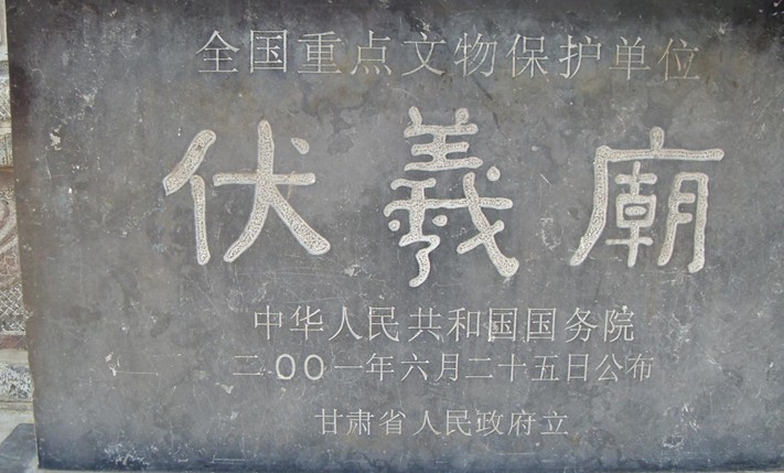 伏羲廟本名太昊宮,俗稱人宗廟,在甘肅省天水市城區(qū)西關(guān)伏羲路。一九六三年人民政府公布為甘肅省重點(diǎn)文物保護(hù)單位。伏羲廟臨街而建,院落重重相套,四進(jìn)四院,宏闊幽深。廟內(nèi)古建筑包括戲樓、牌坊、大門、儀門、先天殿、太極殿、鐘樓、鼓樓、來鶴廳共10座;新建筑有朝房、碑廊、展覽廳等共6座。新舊建筑共計(jì)76間。整個(gè)建筑群坐北朝南。牌坊、大門、儀門、先天殿、太極殿沿縱軸線依次排列,層層推進(jìn),莊嚴(yán)雄偉。