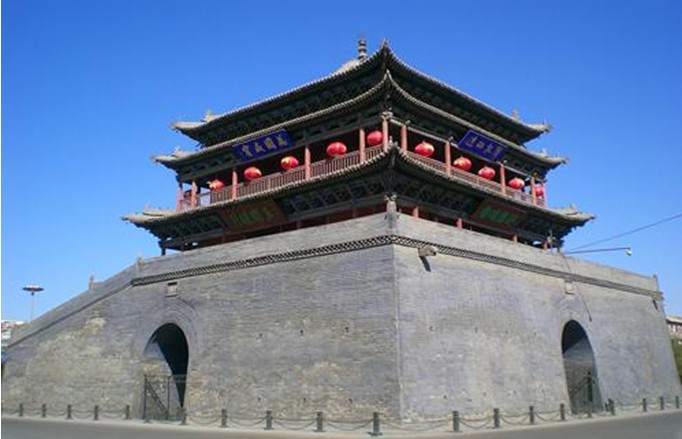 俗稱鼓樓,位于甘肅張掖市中心,東西南北四條大街交匯于此,是河西走廊現(xiàn)存最大的鼓樓。樓于明正德二年(1507年)建在一座磚包的高臺上,臺基寬32米,高9米,基座至樓頂30多米。樓為三層木構(gòu)塔形,飛檐翹角,雕梁畫棟,結(jié)構(gòu)精巧,造型雄偉壯觀?;?ldquo;十”字洞通向東西南北與四條大街銜接。版權(quán)所有山東聊城聊之旅國際旅行社有限公司,轉(zhuǎn)載必究!樓上四面懸有匾額:東為“金城春雨”,西為“玉關(guān)曉月”,南為“祁連晴雪”,北為“居延古牧”。現(xiàn)鼓樓東南角懸唐鐘一口,是以銅為主的合金鑄成,工藝精湛,渾厚雄偉。鐘高1.3米,口徑1.15米,重600公斤。鐘身飾有飛天及朱雀、玄武、白虎、青龍圖案。此鐘古代多用來報時或火災(zāi)報警。