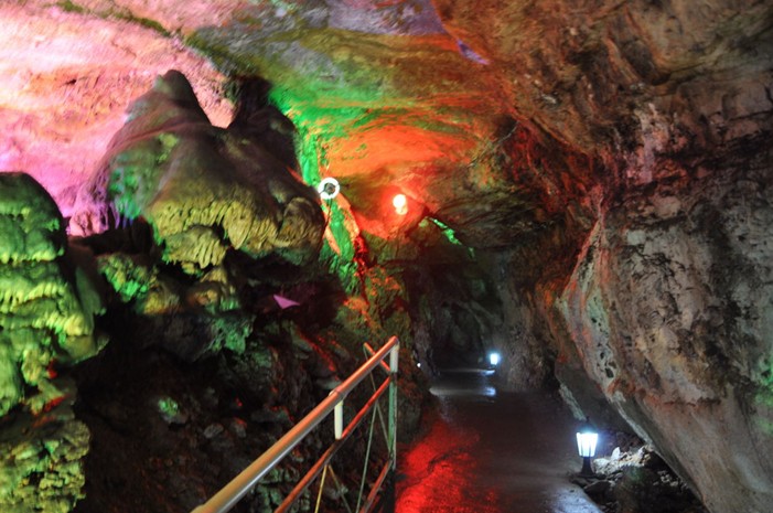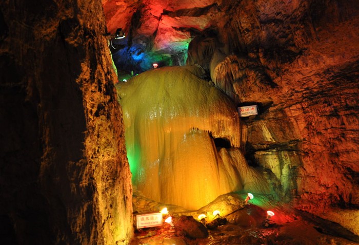 開元溶洞是一條廊道廳堂式洞穴,全長1280米,最高和最寬的地方達30米。由8個大廳組成,大小百余處景點景物供游客觀賞。各廳中均各具特色的采用中國先進的電光源技術(shù)進行燈光布局,給人們帶來不同的視覺效果。