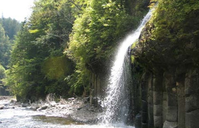 吊水壺瀑布景區(qū)距離三角龍灣15分鐘的車程,與金龍頂子山相依為伴。吊水壺瀑布是火山爆發(fā)后,河床受張力斷迭形成的瀑布,寬約10米,落差7米。更別致的是另有一處水流好似噴泉,自崖中間凌空噴下,象茶壺中的水從壺嘴中倒出來一樣,故當(dāng)?shù)厝朔Q其為“吊水壺”。吊水壺瀑布景致壯觀秀麗,流水清澈見底,冬天水不封冰,夏日冰涼刺骨。炎熱的盛夏時(shí)節(jié)前去,一定會(huì)看到水珠飛濺、霧氣蒙蒙的景象,一陣陣涼氣襲來,沁人心脾,可謂避暑度夏的最好去處了。