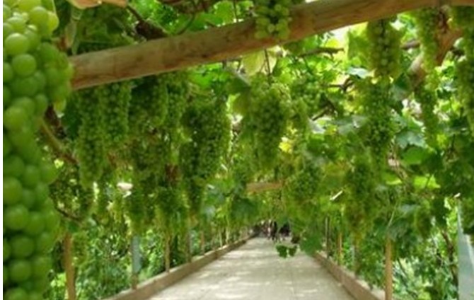 風(fēng)景秀麗的葡萄溝,以盛產(chǎn)優(yōu)質(zhì)葡萄而聞名中外。1994年溝里種植葡萄315.6 公頃,生產(chǎn)鮮葡萄8601噸。這里主要種植無(wú)核白葡萄,還有馬奶子、紅葡萄、喀什哈爾、日加干、瑣瑣等 13個(gè)品種。其果實(shí)呈球形、卵形、橢園形等,有的葡萄晶瑩如珍珠,有的鮮艷似瑪瑙,而有的綠若翡翠。版權(quán)所有山東聊城聊之旅國(guó)際旅行社有限公司,轉(zhuǎn)載必究!那五光十色、翠綠欲滴的鮮葡萄,令人垂涎不止。尤其是這里生產(chǎn)的無(wú)核白葡萄、皮薄、肉嫩、多汁、味美,營(yíng)養(yǎng)豐富,素有“珍珠”美稱,其含糖量高達(dá)20-24%,超過(guò)美國(guó)加利福尼亞州的葡萄,居世界之冠。用無(wú)核白鮮葡萄晾制的葡萄干,含糖量高達(dá)60%,被人們視為葡萄中的珍品。