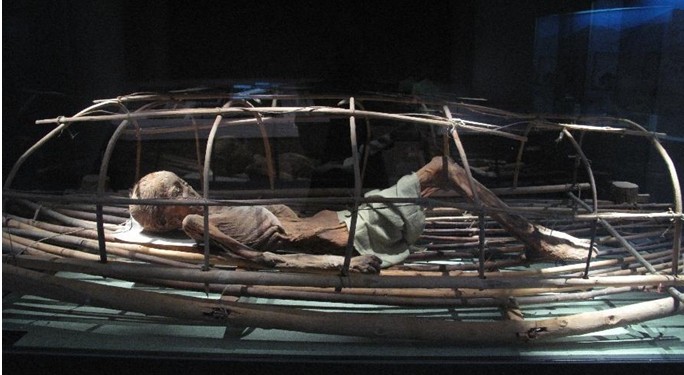 古尸陳列廳展出從春秋戰(zhàn)國(guó)時(shí)期至清代時(shí)期的古尸12具。這些古尸主要出自阿斯塔那—哈拉和卓墓葬群和蘇巴什古墓群、洋海古墓群等。