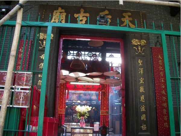 油麻地天后廟于1865年由當(dāng)?shù)氐乃暇用袼ǎ瓰橛吐榈睾_叺囊蛔R宇,當(dāng)時(shí)位置約于今日的北海街一帶。1870年,油麻地居民組成油麻地五約,重修該天后廟,成為當(dāng)?shù)氐淖诮讨行募白罘笔⒌牡胤?。版?quán)所有山東聊城聊之旅國(guó)際旅行社有限公司,轉(zhuǎn)載必究!當(dāng)時(shí)天后廟前的土地是漁民曬船上麻纜的地方,而不少經(jīng)營(yíng)補(bǔ)漁船的桐油及麻纜商店在那里開設(shè),版權(quán)所有山東聊城聊之旅國(guó)際旅行社有限公司,轉(zhuǎn)載必究!成為“油麻地”這個(gè)地名的起源。惟1874年甲戌風(fēng)災(zāi),原廟被摧毀。當(dāng)?shù)鼐用袼煊谝钅昊I募經(jīng)費(fèi)重建,1876年選取現(xiàn)址開始動(dòng)工,1890年始告全面落成。而于1887年,天后廟以南及以北的街道被政府命名為“廟南街”和“廟北街”,其后合并為廟街,也是“廟街”這個(gè)街名的起源。