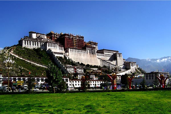 “拉薩”在藏語中為“圣地”或“佛地”之意,長期以來就是西藏政治、經(jīng)濟(jì)、文化、宗教的中心,金碧輝煌、雄偉壯麗的布達(dá)拉宮,是至高無上政教合一政權(quán)的象征。早在七世紀(jì),松贊干布兼并鄰近部落、統(tǒng)一西藏后,就從雅隆遷都邏姿(即今拉薩),建立吐蕃王朝。