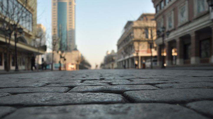 中央大街全長(zhǎng)1450米,寬21.34米,其中馬路方石路寬10.8米。最具特色的就是整條街由方石鋪成。1924年5月,俄國(guó)工程師科姆特拉肖克設(shè)計(jì)并監(jiān)工,為“中國(guó)大街”鋪上了花崗巖石塊,寬度為10沙繩,沙繩是俄制度量單位:1沙繩等于2.134米。鋪路用的方石塊每塊長(zhǎng)18厘米、寬10厘米,其形狀大小就像俄式的小面包一樣,石面呈渾圓型,精巧、密實(shí)、光亮、圓潤(rùn),在中外道路史上極為罕有。據(jù)說(shuō),當(dāng)時(shí)的一塊方石價(jià)錢相當(dāng)于一塊銀元。“中國(guó)大街”足有1公里長(zhǎng),粗略算下來(lái),整條街大約鋪有方石87萬(wàn)塊,真可謂是黃金鋪路。