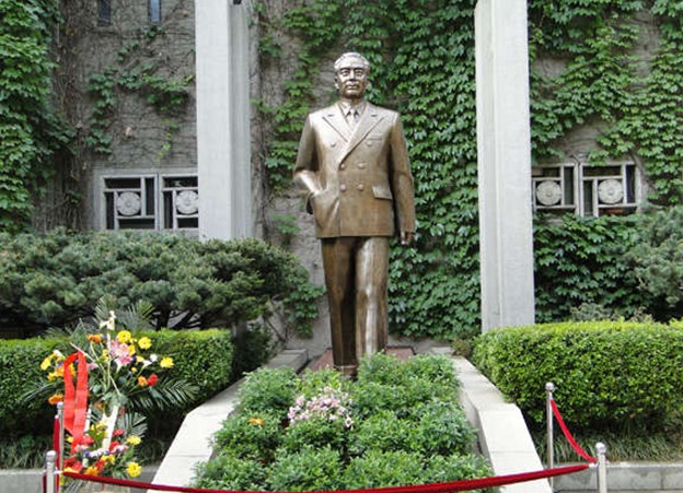 1990年7月1日,喬石為周恩來銅像落成揭幕,并參觀中共代表團(tuán)梅園新村紀(jì)念館。