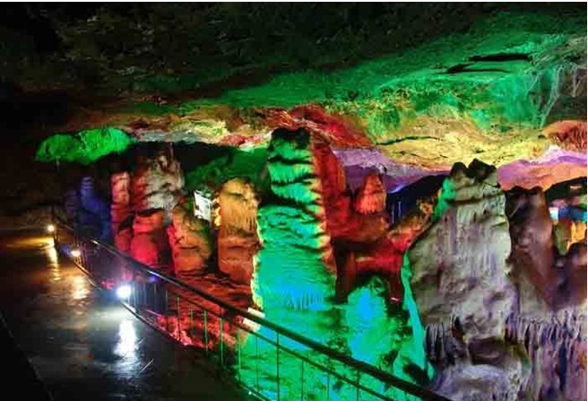 “靈丹妙藥”:從白膚潭往上走,到了巖臺便可觀賞第二級瀑布“靈丹妙藥”。這級瀑布的峭壁像刀削般整齊,跌巖不大,水勢均勻,水質(zhì)清純,是天然的礦泉水。據(jù)當?shù)厝苏f常喝此水能防病治病,故命名為“靈丹妙藥”。