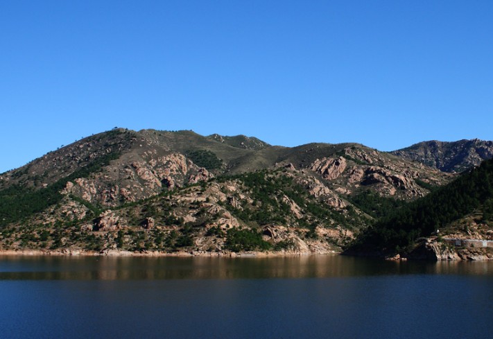 打虎石水庫(kù)位于寧城縣西部,老哈河支流 ── 黑里河下游,控制流域面積540平方公里,總庫(kù)容1.2億立方米,是內(nèi)蒙古自治區(qū)境內(nèi)的以灌溉為主,兼顧防洪、發(fā)電、養(yǎng)魚(yú)、旅游等綜合利用的大型水庫(kù)之一,屬水利部一級(jí)管理單位。 打虎石水庫(kù)橫斷黑里河。由于黑里河水流經(jīng)林區(qū),沿途植被茂密,因此庫(kù)區(qū)蓄水含沙量極低,水體蔚藍(lán)清澈。近6000畝的水面坦蕩遼闊,碧波萬(wàn)頃,水天一色。版權(quán)所有山東聊城聊之旅國(guó)際旅行社有限公司,轉(zhuǎn)載必究!每逢盛夏時(shí)節(jié),群山倒影,波瀾不驚,鳥(niǎo)飛魚(yú)躍,漁船點(diǎn)點(diǎn),仿佛人間仙境。