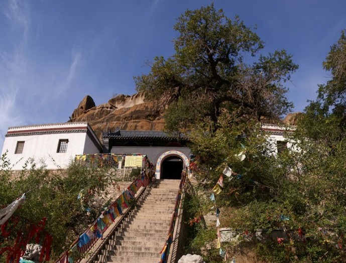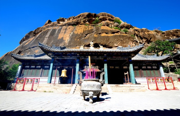 遼代石窟“真寂之寺”即林東后召廟石窟寺。其寺位于遼上京南15公里的山谷中。石窟開鑿在桃石山東南面陡壁上,分中、南、北三窟。窟前是清代續(xù)建的喇嘛廟“善福寺”。中窟眉額刻“真寂之寺”四個大字,當(dāng)為遼代開鑿石窟的題名。“真寂”二字與中中窟內(nèi)釋迦牟尼“圓寂”之意相合??邇?nèi)釋迦臥佛像周圍有佛弟子像若干,做悲哀狀??弑谟星Х鹣癜儆嘧穑蜗蟾鳟?,南窟雕像中間為佛,騎獅子和象的文殊、普賢二菩薩分列兩邊,又有供養(yǎng)人服侍,窟門口有金剛力士像。北窟分內(nèi)外兩室,外室雕像同于南窟,內(nèi)室造像均為浮雕,有佛、弟子和供養(yǎng)人,兩側(cè)刻有胡服裝束力士像一對,頗具特色。桃石山谷口兩側(cè)緣石壁立有兩尊金剛力士浮雕,十分生動,一東一西,各自把定金剛杵,足踏耐熏二鬼,另在巖壁和巨石之上多有清代陽刻梵文:“六字真言”。 版權(quán)所有山東聊城聊之旅國際旅行社有限公司,轉(zhuǎn)載必究!“真寂之寺”附近的山谷中還有石窟若干,其中有遼史所記弘福寺及開化寺遺址,諸多跡象表明這里是遼、清兩代弘揚(yáng)佛法的對地。