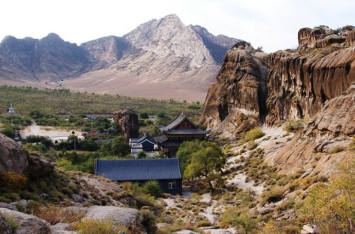 巴林左旗召?gòu)R位于內(nèi)蒙古自治區(qū)赤峰市巴林左旗林東鎮(zhèn)南15公里處 ,當(dāng)?shù)厝艘步袑毟襁_(dá)召或阿貴圖廟(蒙語(yǔ)譯音)。召?gòu)R始建于遼王朝,占地面積1023.35畝,由石窟和外殿兩部分組成,石窟開鑿于遼代,史稱——真寂之寺,外殿建于清代,名為善福寺(前殿)及千佛殿,是內(nèi)蒙古自治區(qū)級(jí)重點(diǎn)文物保護(hù)單位。真寂之寺位于群山之中。圣水、別愣、靈巖三山鼎立,自然造就一個(gè)箕形山谷。靈巖山從谷地驟然拔起,懸崖峭壁,十分險(xiǎn)峻。一桃形巨石僅以三點(diǎn)支撐,聳立在峰頂崖端,版權(quán)所有山東聊城聊之旅國(guó)際旅行社有限公司,轉(zhuǎn)載必究!契丹石窟開鑿在桃石山東南面陡壁上,分中、南、北三窟??咔笆乔宕m(xù)建的喇嘛廟“善福寺”??邇?nèi)有千佛像,形態(tài)各異。