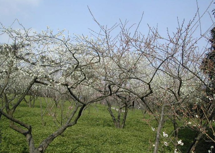 梅園以梅花馳名。梅園的梅花已有七十多年的栽培歷史,現(xiàn)有三四十個(gè)品種,著名的有潔白素凈的玉蝶梅,有花如碧玉萼如翡翠的綠萼梅,有紅顏淡妝的宮粉梅,有胭脂滴滴的朱砂梅,有濃艷如墨的墨梅,更有枝干盤曲、矯若游龍的龍游梅等。并有造型幽雅、虬枝倒懸、枯樹老干、疏影橫斜的梅樁藝術(shù)盆景。