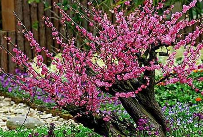著名的有素白潔凈的玉蝶梅,有花如碧玉萼如翡翠的綠萼梅,有紅顏淡妝的宮粉梅,有胭脂滴滴的朱砂梅,有濃艷如墨的墨梅,有枝桿盤曲矯若游龍的龍游梅等。還有造型幽雅、虬枝倒懸、枯樹老干、疏影橫斜的梅樁藝術(shù)盆景。