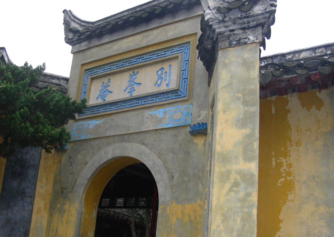 鄭板橋讀書(shū)處在江蘇鎮(zhèn)江的別峰庵內(nèi),是清雍正年間揚(yáng)州八怪之一鄭板橋讀書(shū)之所在。別峰庵呈四合院形制,一方花壇,數(shù)株桂花修竹,環(huán)境幽雅宜人,門(mén)上保留著鄭氏當(dāng)年手書(shū)對(duì)聯(lián)"室雅何須大,花香不在多",對(duì)讀書(shū)處的鐘愛(ài)溢于言表?!∴嵃鍢蛟?shī)、書(shū)、畫(huà)“三絕”,筆下之竹尤為世人稱(chēng)道,焦山隨處可見(jiàn)形態(tài)各異的修竹,觀察入微的鄭板橋自是得心應(yīng)手。有詩(shī)為證: 靜室焦山十五家,家家有竹有籬笆?!‘?huà)來(lái)出紙飛騰上,欲向天邊掃暮霞?!∴嵤夏珜氃诖颂幜宅槤M(mǎn)目,“難得糊涂”、“吃虧是福”之類(lèi)警句拓片更是令南來(lái)北往的游人心向往之。