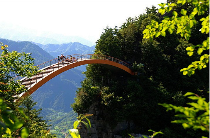 飛云渡是一座橫亙燕子埡壑口上空的全鋼結(jié)構(gòu)的觀景橋,這座鋼橋懸空高、跨度大,是亞洲海拔最高的景觀橋。登上燕天飛渡,變幻莫測(cè)的自然景觀,一眼望不到邊際的原始森林,是那樣令人驚奇和癡迷。兩岸老態(tài)龍鐘的黃楊,古樸郁香的巖柏,蒼勁挺拔的冷杉,翔于林間的走獸飛禽,一切是那樣的和諧寧靜,自在而安詳。
