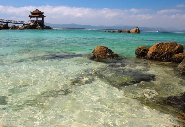這里,崖洲灣弧弦百里、碧波萬頃,鰲山云深林翠,巖奇洞幽,遍布神工鬼斧,大小石群。山海之間宛如一副古樸優(yōu)美的山海圖畫。歷代文人騷客莫不鐘情于這一方山水。1962年郭沫若游覽“大小洞天”,對(duì)景區(qū)的山光海色贊嘆不已,在《游崖縣鰲山》一詩(shī)中譽(yù)之為“南溟奇甸”。大小洞天風(fēng)景區(qū)有歷史悠久的名人勝跡。唐代高僧鑒真率日本留學(xué)僧容睿、普照及弟子祥彥、思托等35人第五次東渡日本,海上遇臺(tái)風(fēng)漂流萬里至此登岸,并修造大云寺,傳播佛教文化;宋末元初女紡織家黃道婆往返與崖州灣,把先進(jìn)的植棉、紡棉技術(shù)帶至中原大陸,留下千秋史話。