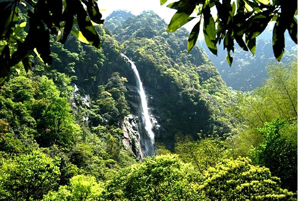 太平山瀑布是由其獨具一色而聞名,其水源來自太平山頂?shù)墓拍经h(huán)抱的平湖,清泉順山勢往下流,到絕壁處便飛瀉直下,先是瀉向一丈有余巨石上,濺起一簇簇如珠似玉的水花,鳴聲如雷,回蕩山谷。瀑布沿著巨石折古而行,流入一個大巖池,環(huán)池旋轉后,又沿石縫折跌而下,形成二級飛瀑,水流又沿石入池,漫過池沿而下流,到斜壁處飛瀉入深潭。形成三級瀑布,構成太平山的飛瀑奇觀。