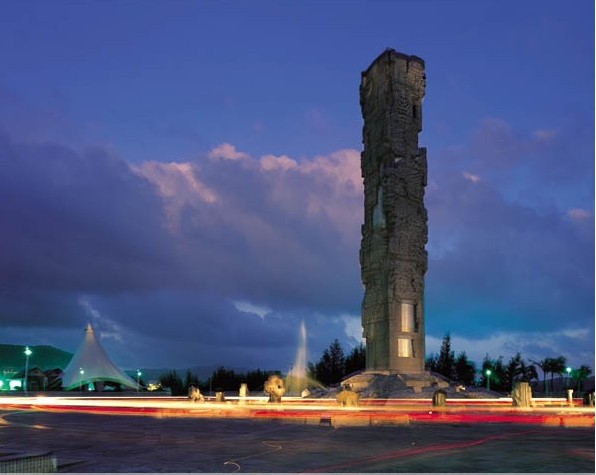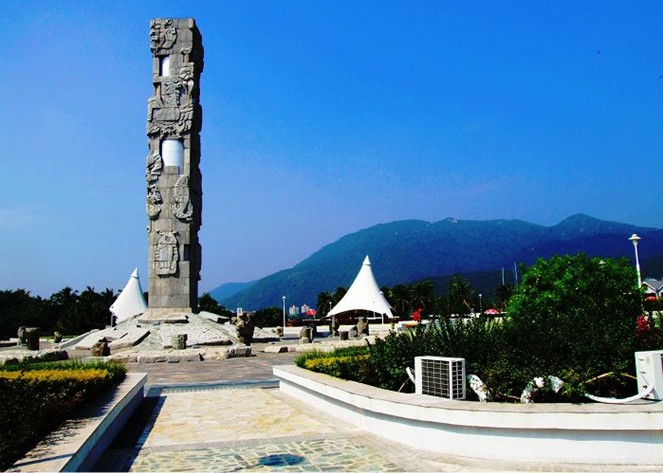 亞龍灣中心廣場(chǎng),位于三亞市東南28公里處。廣場(chǎng)以圖騰柱向藍(lán)天升騰,以雕塑群向大地和大海延伸,其宏偉氣勢(shì)和獨(dú)特的藝術(shù)造型,以有限的藝術(shù)空間形式,引導(dǎo)我們的想象向無(wú)限的空間擴(kuò)展。廣場(chǎng)外圍設(shè)計(jì)的五組白色風(fēng)帆式的尖頂帳篷及大型彩色噴泉,給具有古老文化意蘊(yùn)的雕塑增添了現(xiàn)代氣息。